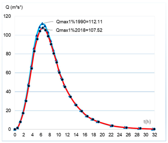 The usage of curve numbers together with the watershed morphometric parameters (including rainfall data) for the synthetic unit hydrograph (SUH) enables the assessment of the maximal discharges of a certain probability of occurrence. In the references [57,58,59], this method is applied and explained in detail.