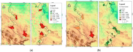 where AgL2—agriculture land use in 2012, and AgL1—agriculture land use in 1991.
