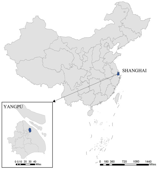 To develop a more representative model for evaluating and analysing the spatial quality of underground pedestrian streets, this study focused on the underground pedestrian street space in the Wujiaochang Yangpu District in Shanghai. Following field research and a review of relevant literature, it was determined that Shanghai, as shown in Figure 2, is a high-density international metropolis located in East China. This city has significant requirements for urban space quality, particularly concerning transport organisation, functional layout, and resource utilisation. Additionally, Shanghai’s underground spaces, developed earlier than in many other cities, currently face challenges such as inadequate design and planning, difficulties in commercial operation, and the inefficient use of space resources in underground construction [54,55]. The Shanghai Urban Master Plan (2013–2035) has outlined requirements for redeveloping existing underground spaces, enhancing the connectivity and coverage of passages surrounding metro stations, and improving the regional non-functioning network [56]. The underground space in the Wujiaochang area of Shanghai has been systematically planned and implemented for over 15 years, contributing to increased urban compactness and enhancing the efficiency of the pedestrian network and the reach of metro services [57]. However, this area continues to experience chaotic phenomena such as the waste of spatial resources, mixed pedestrian flows, and an uneven distribution of businesses. Additionally, research on spatial quality from a perceptual experience perspective remains limited. Therefore, studying underground space in this area is crucial for the city’s renewal and future sustainable development.