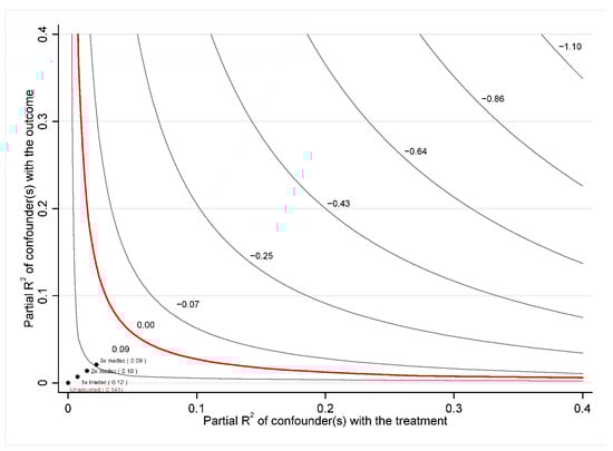 These analyses confirm that the study’s core findings are robust, even under significant omitted variable shocks.