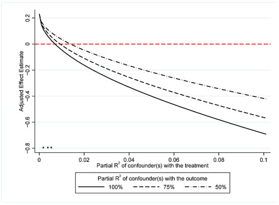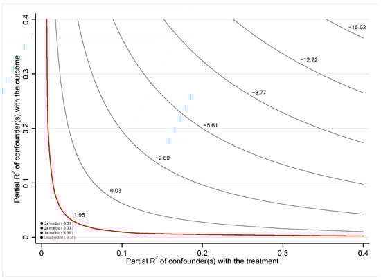 4. Sensitivity Analysis. We follow the sensitivity analysis framework proposed by Cinelli et al. [] to address the potential influence of omitted variables. Specifically, we evaluate whether including omitted variables with a strength of 1–3 times the observed variables alters the estimated coefficients.