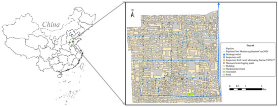 However, despite these advances, clear research gaps remain. Existing studies on the integration of grey and green infrastructure have mainly focused on newly developed districts or relatively open urban spaces, where land availability facilitates the implementation of large-scale LID measures. In contrast, compared with newly developed districts, old urban areas are often constrained by land scarcity and insufficient space for facility installation. Their drainage systems are commonly characterized by outdated design standards, pipe sedimentation, structural deterioration, uneven settlement, and inflow–infiltration problems, all of which significantly weaken drainage capacity [28,29]. Systematic studies on the coupled application of grey measures (such as pipe retrofitting) and green measures (such as green roofs and permeable pavements) under such constrained environments remain very limited. At the same time, few investigations have explored how to balance flood mitigation effectiveness, spatial feasibility, and economic cost within compact urban spaces. Addressing these gaps is essential for providing targeted and practical flood-control solutions for old urban districts.