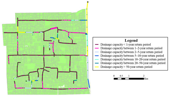 Evaluation Results of the Current Drainage Capacity of the Pipe Network.