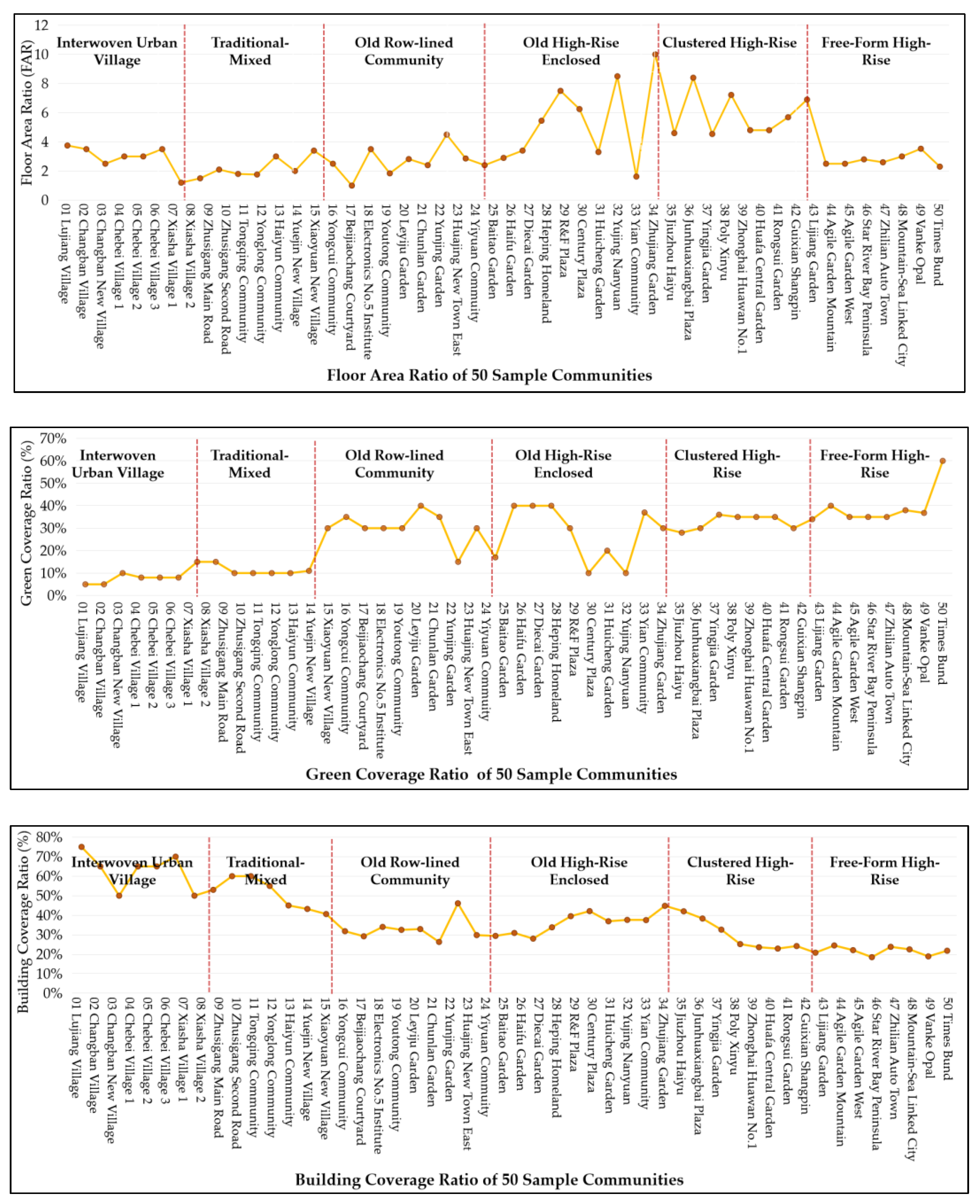 Wang, Z.; Zhang, C.; Li, X.; Luo, L. Community Morphology and Perceptual Evaluation from the Perspective of Density: Evidence from 50 High-Density Communities in Guangzhou, China. Land 2025, 14, 2019. https://doi.org/10.3390/land14102019