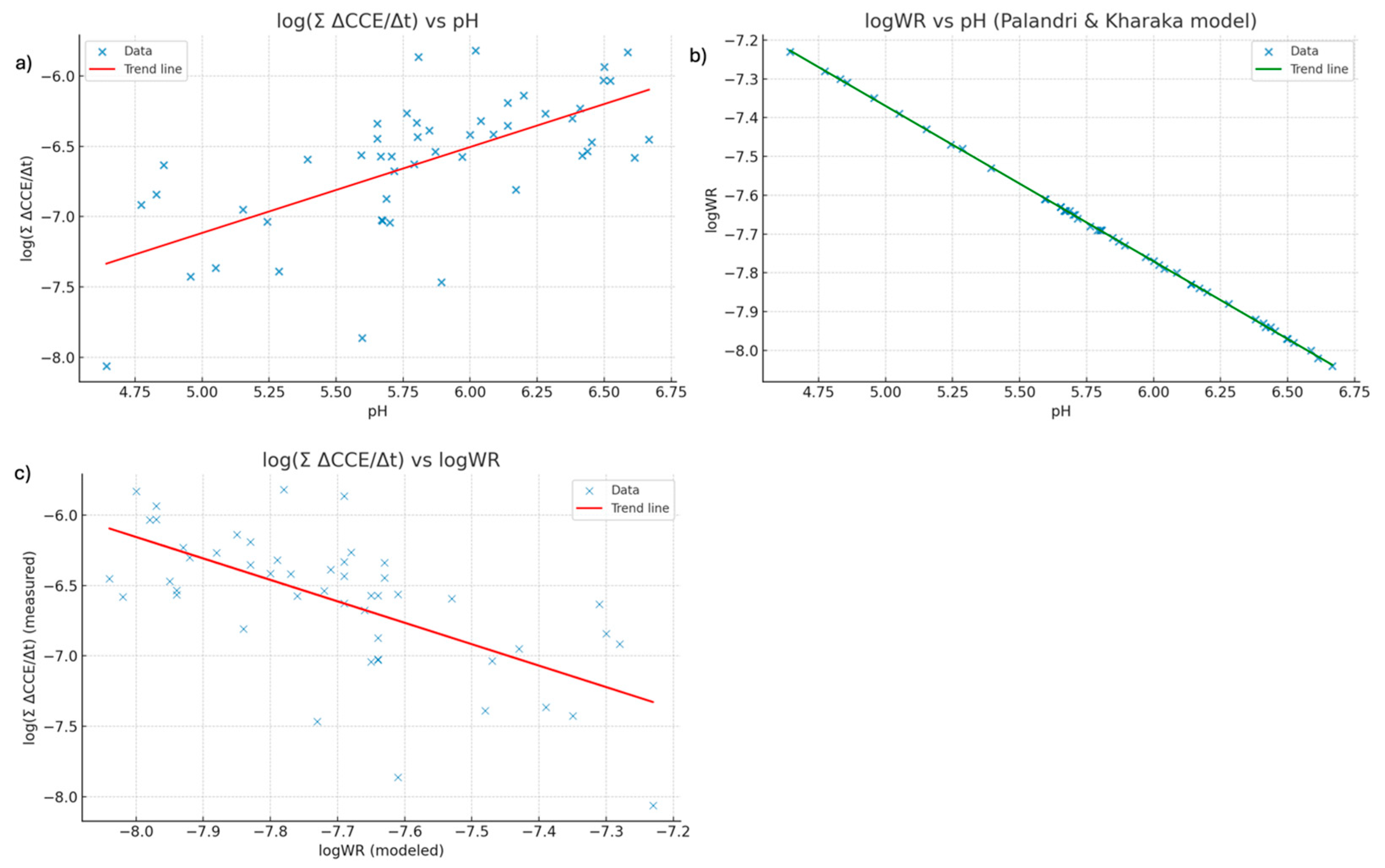 Table S4. This dataset forms the basis for the regressions and correlation analyses presented in the following tables, where we examine the relationship between soil pH and log (ΣΔCCE/Δt) and assess how well this proxy aligns with the theoretical logWR.