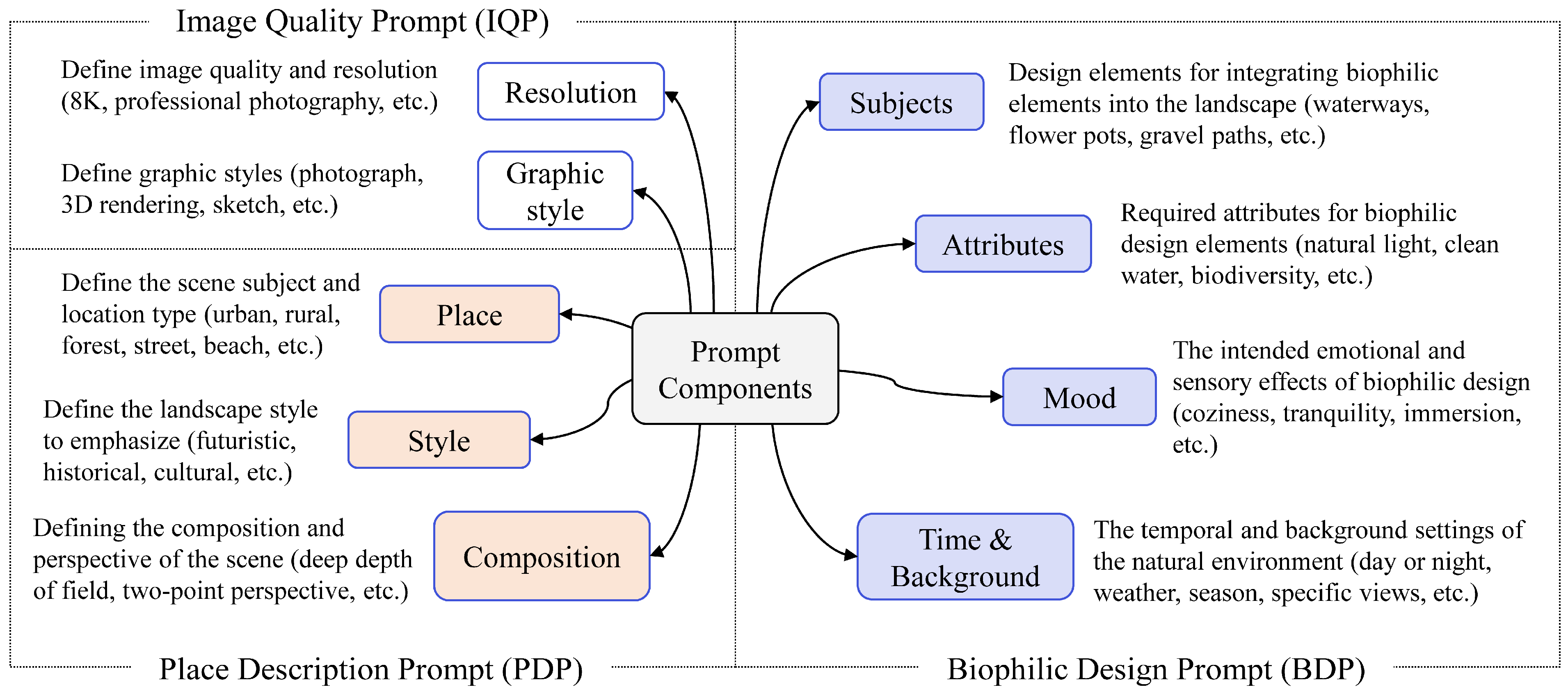 - Lee, E.J.; Park, S.J. A Structured Prompt Framework for AI-Generated Biophilic Architectural Spaces. J. Build. Eng. 2025, 111, 113326. [Google Scholar] [CrossRef]