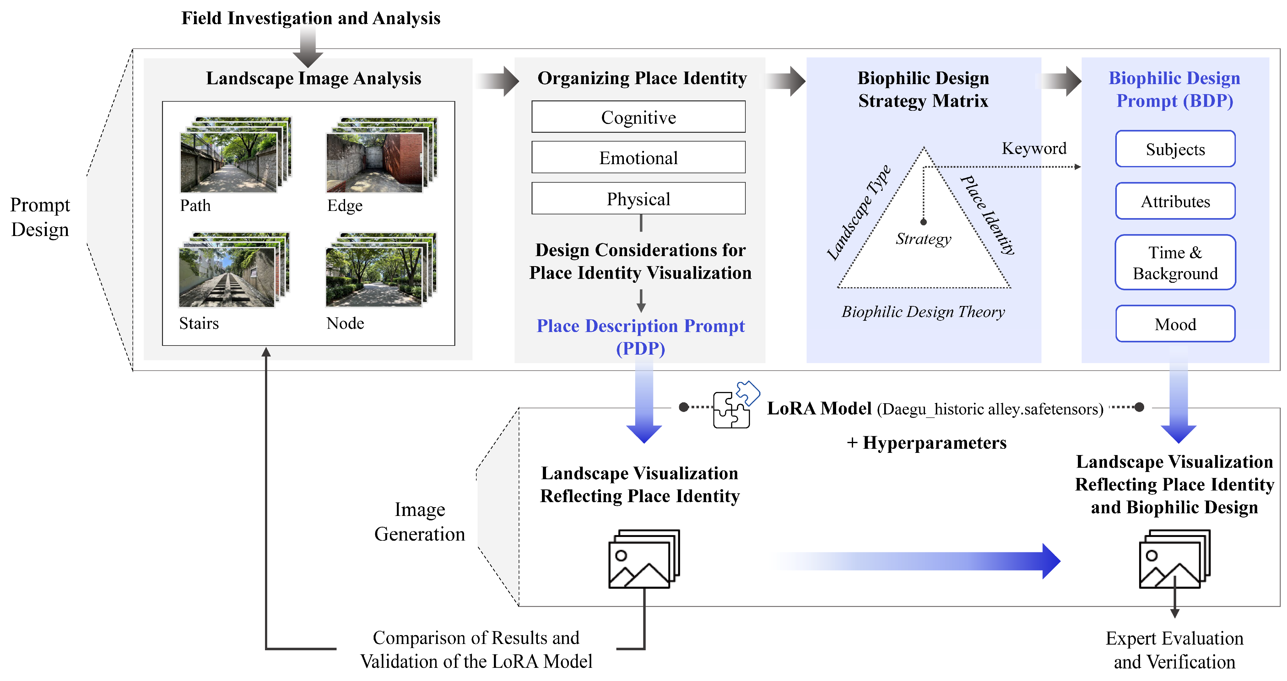 Lee, E.-J.; Park, S.-J. Generative AI for Biophilic Design in Historic Urban Alleys: Balancing Place Identity and Biophilic Strategies in Urban Regeneration. Land 2025, 14, 2085. https://doi.org/10.3390/land14102085