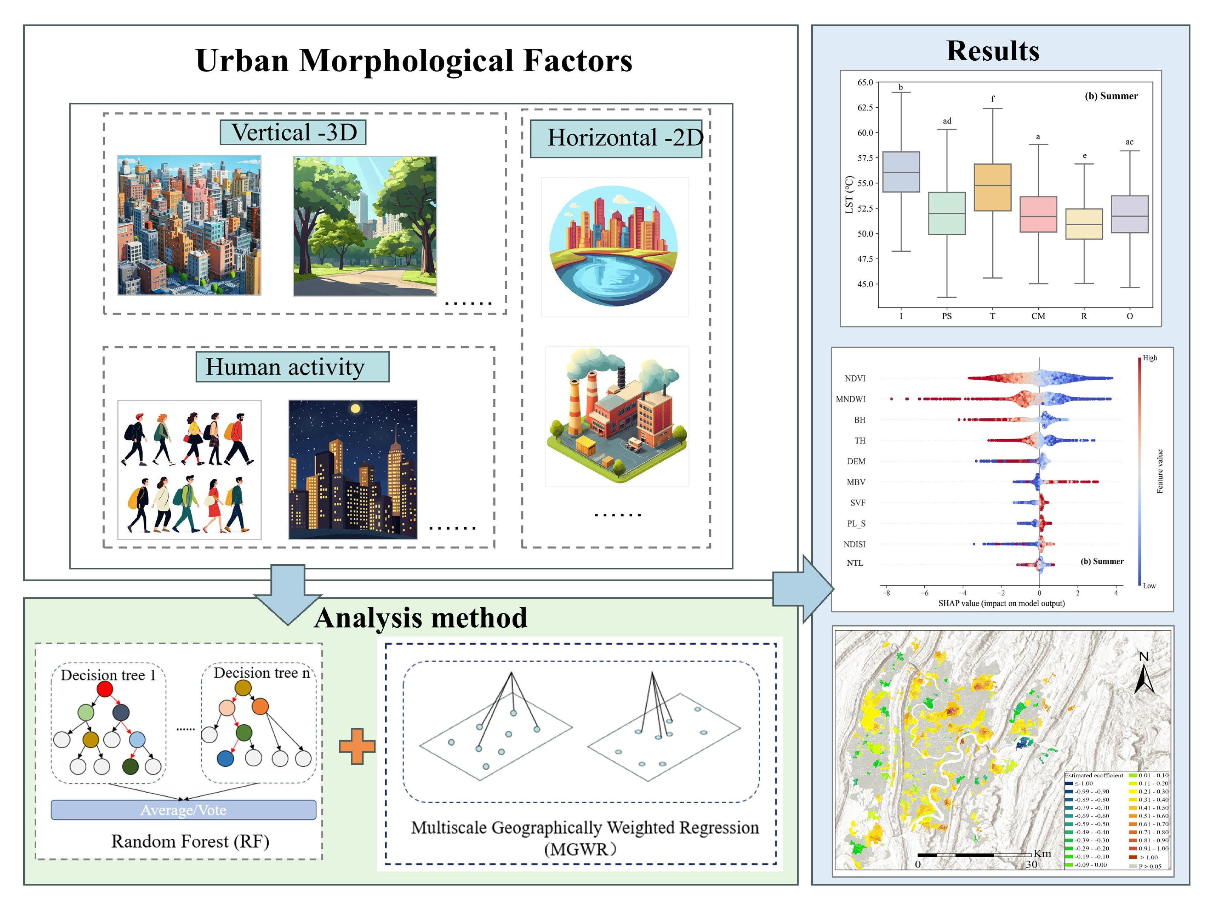 - He, R.; Wang, J.; Liu, D. Assessing the Impact of Urban Spatial Form on Land Surface Temperature Using Random Forest—Taking Beijing as a Case Study. Land 2025, 14, 1639. [Google Scholar] [CrossRef]