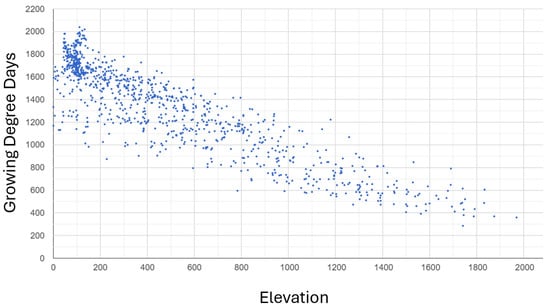 - Matzarakis, A.; Dafinka, I.; Balafoutis, C.; Makrogiannis, T. Climatology of growing degree days in Greece. Clim. Res. 2007, 34, 233–240. [Google Scholar] [CrossRef]