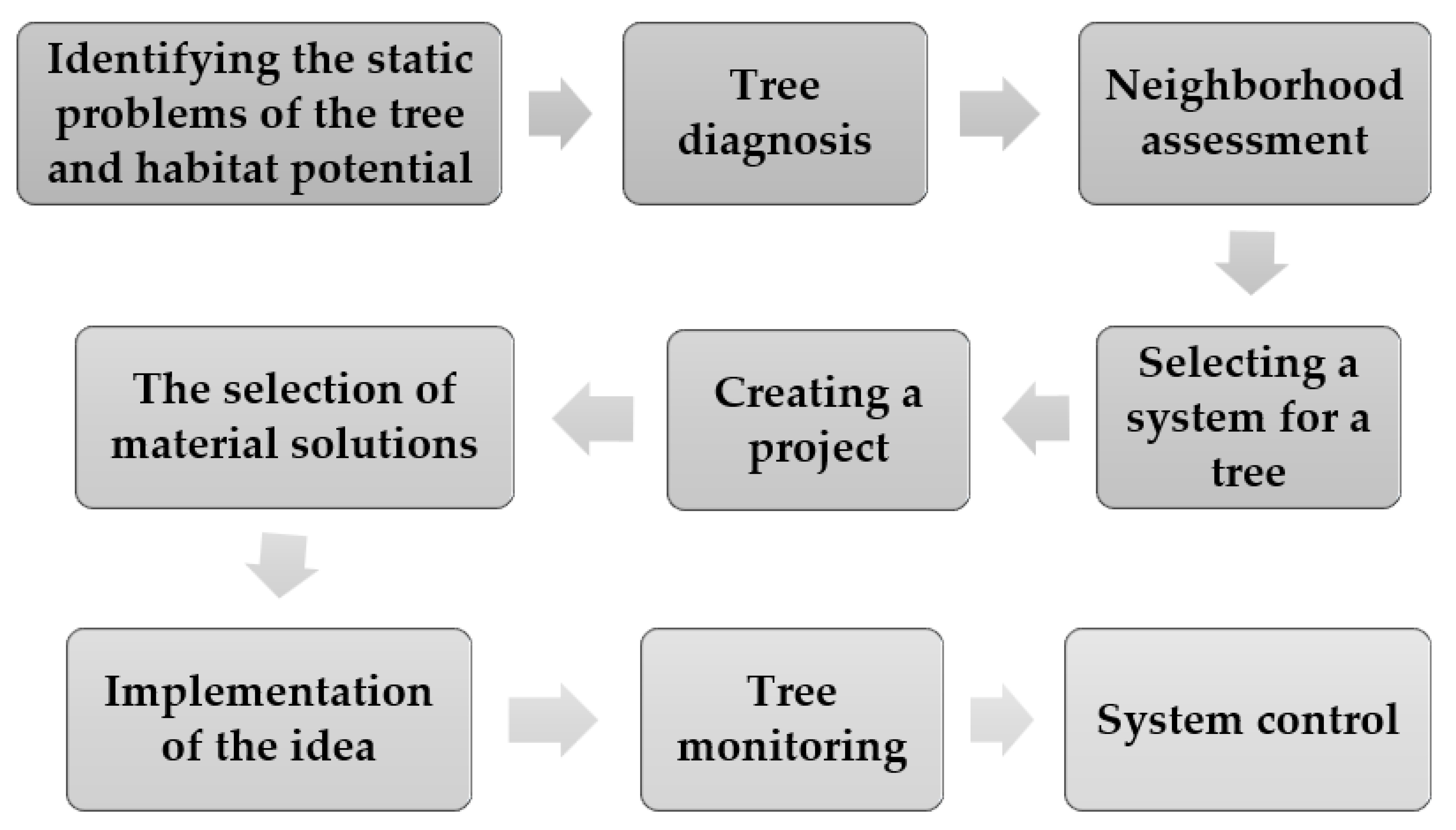 - Suchocka, M. Advantages and limitations of using the visual tree assessment (VTA) method as a response to problems related to threats caused by urban trees. Człowiek I Sr. 2012, 36, 97–110. [Google Scholar]