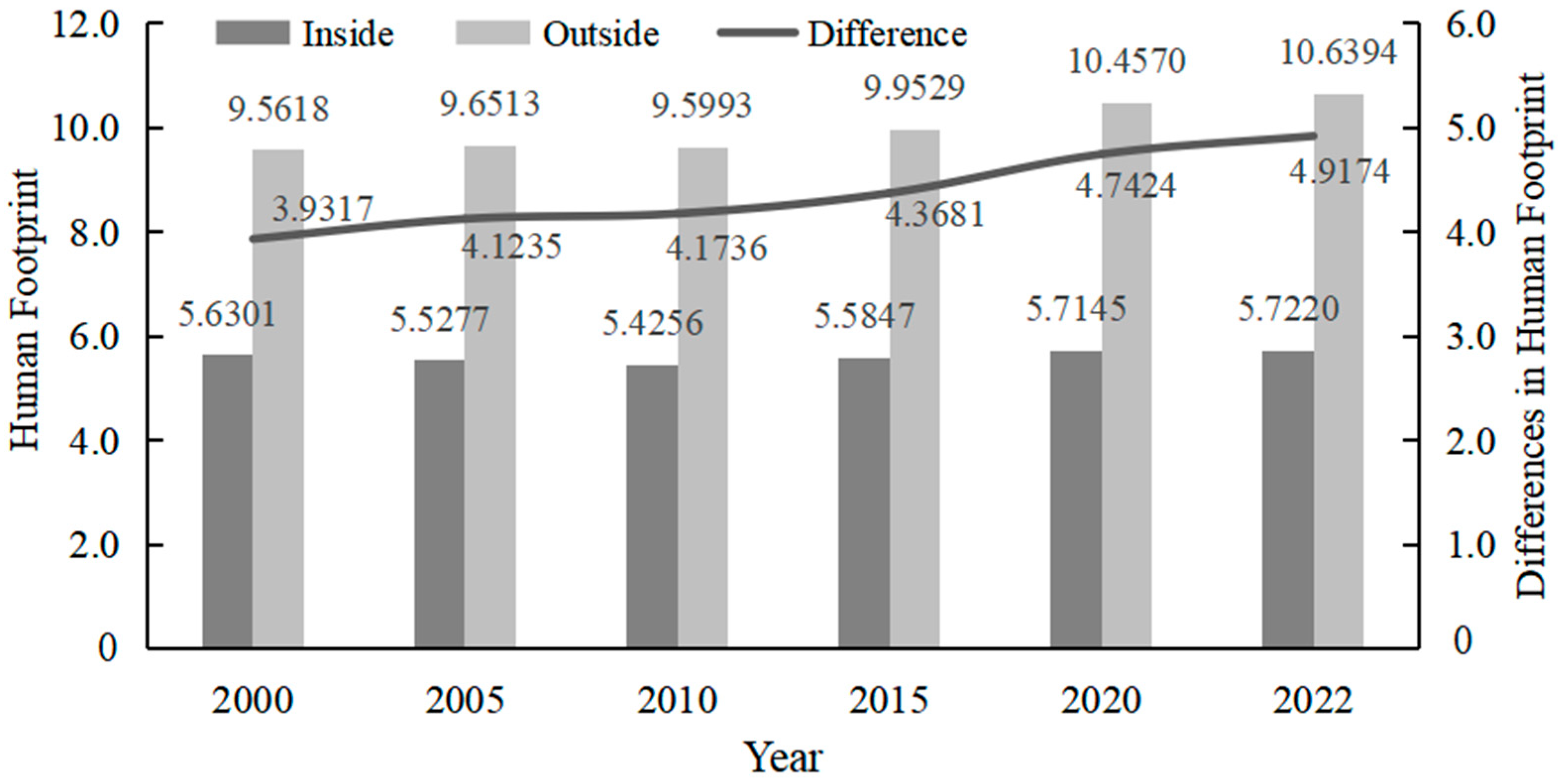 4.1. Human Footprint Disparities Inside and Outside the QMNNR