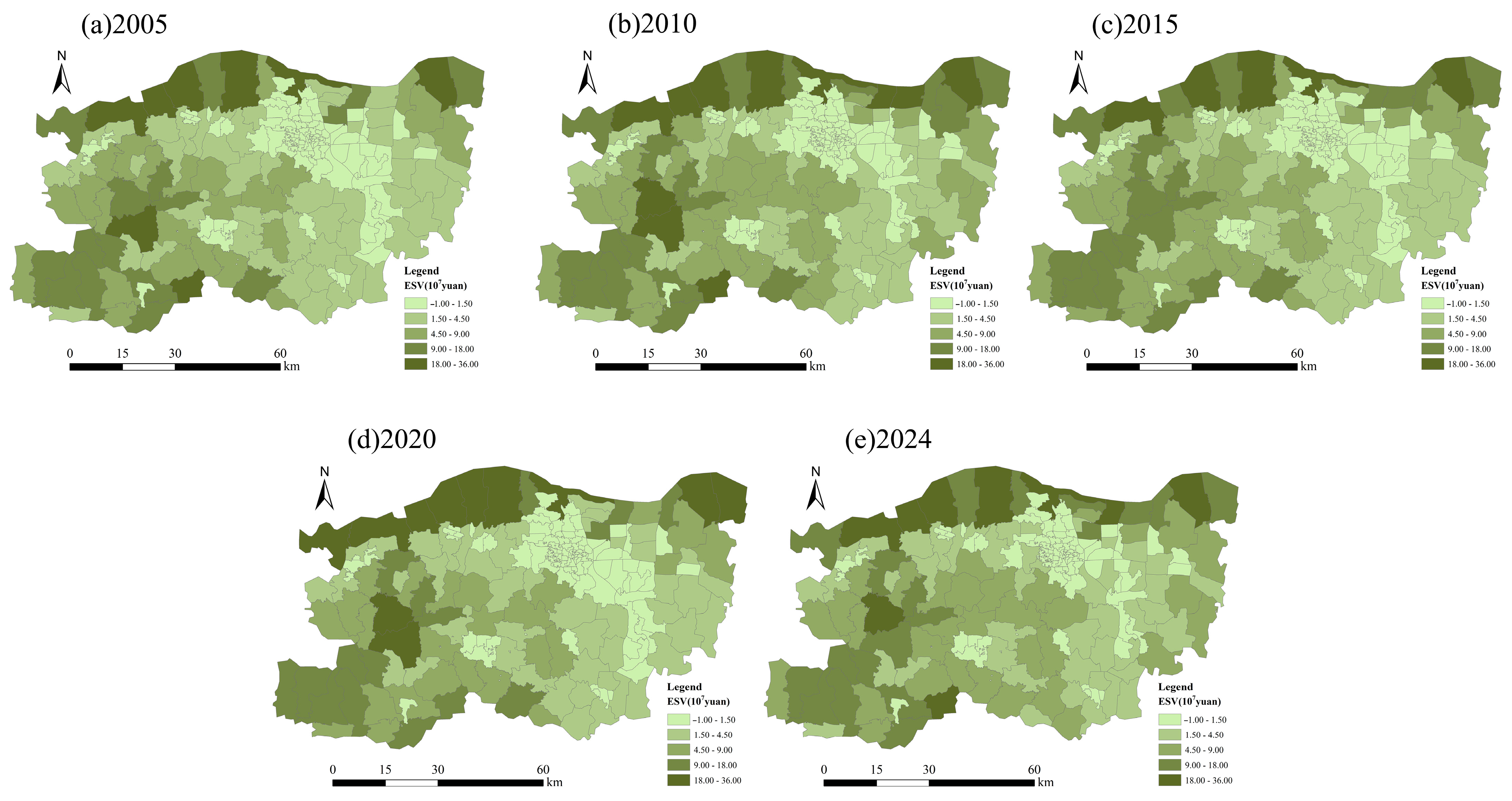 3.2.1. The Change in ESV from 2005 to 2024