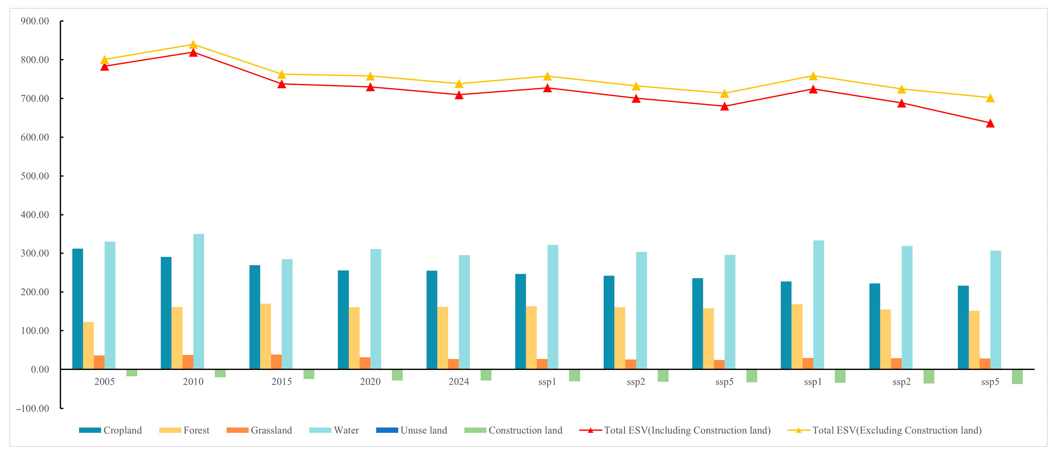 Table 10. ESVs under SSP Scenarios (107 yuan/hm2).
