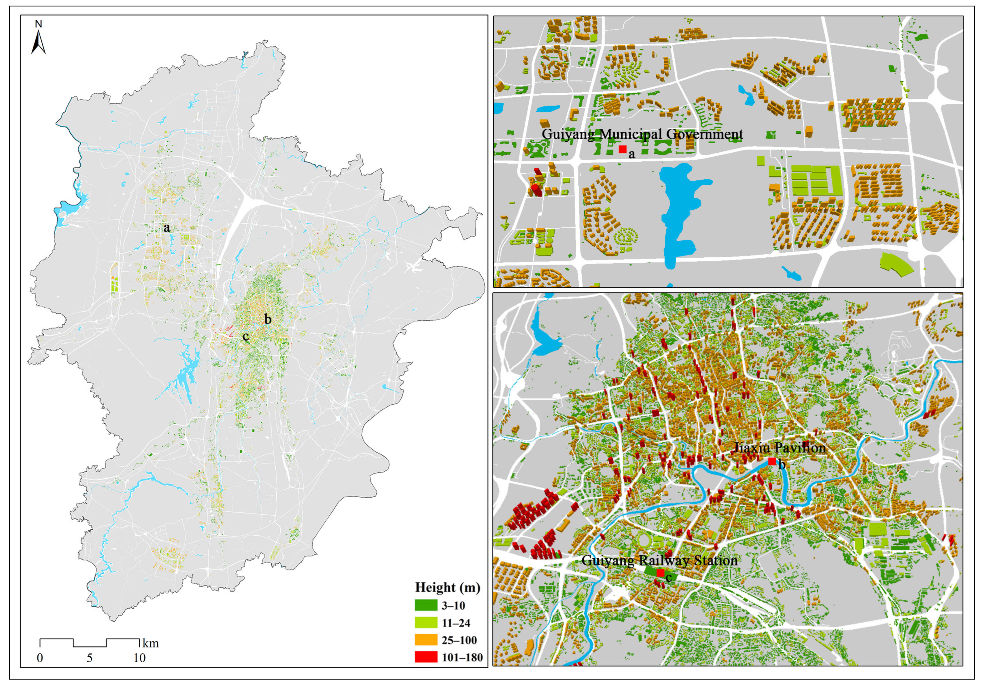 3.2.1. Spatial Distributions of Buildings Height