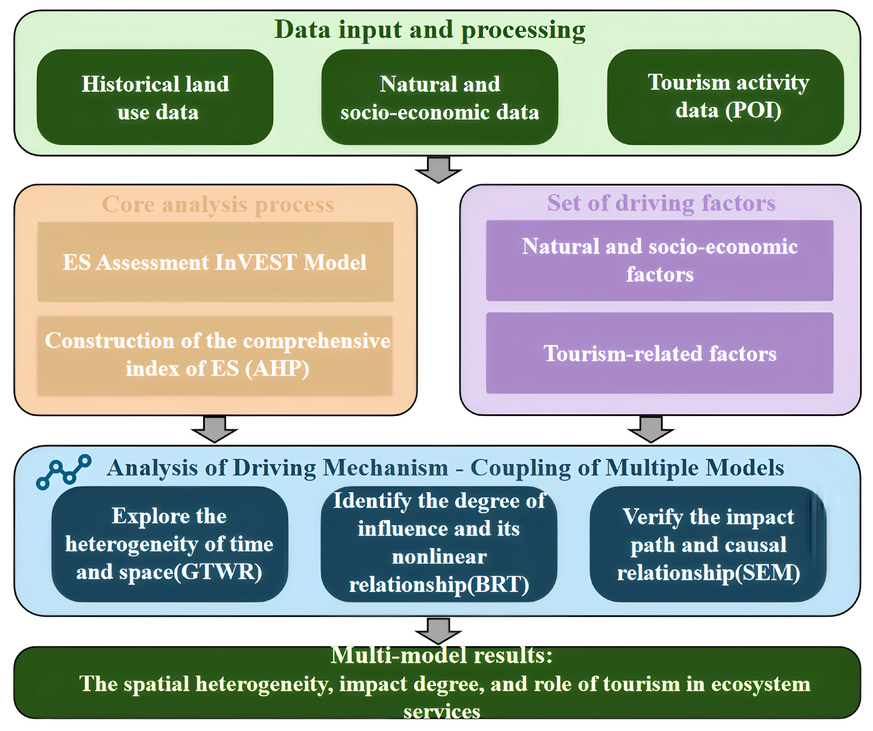 - Natural factors remain the dominant determinants of ES patterns; however, the influence of tourism has shown a clear and accelerating upward trend.