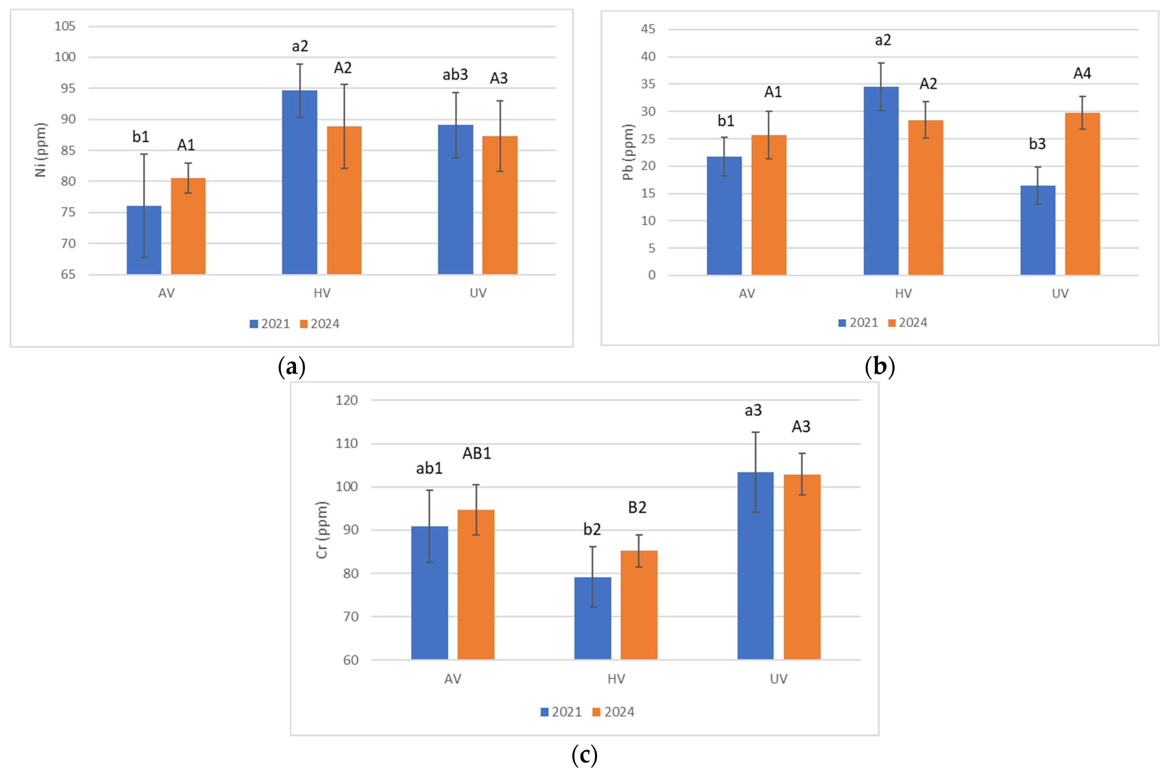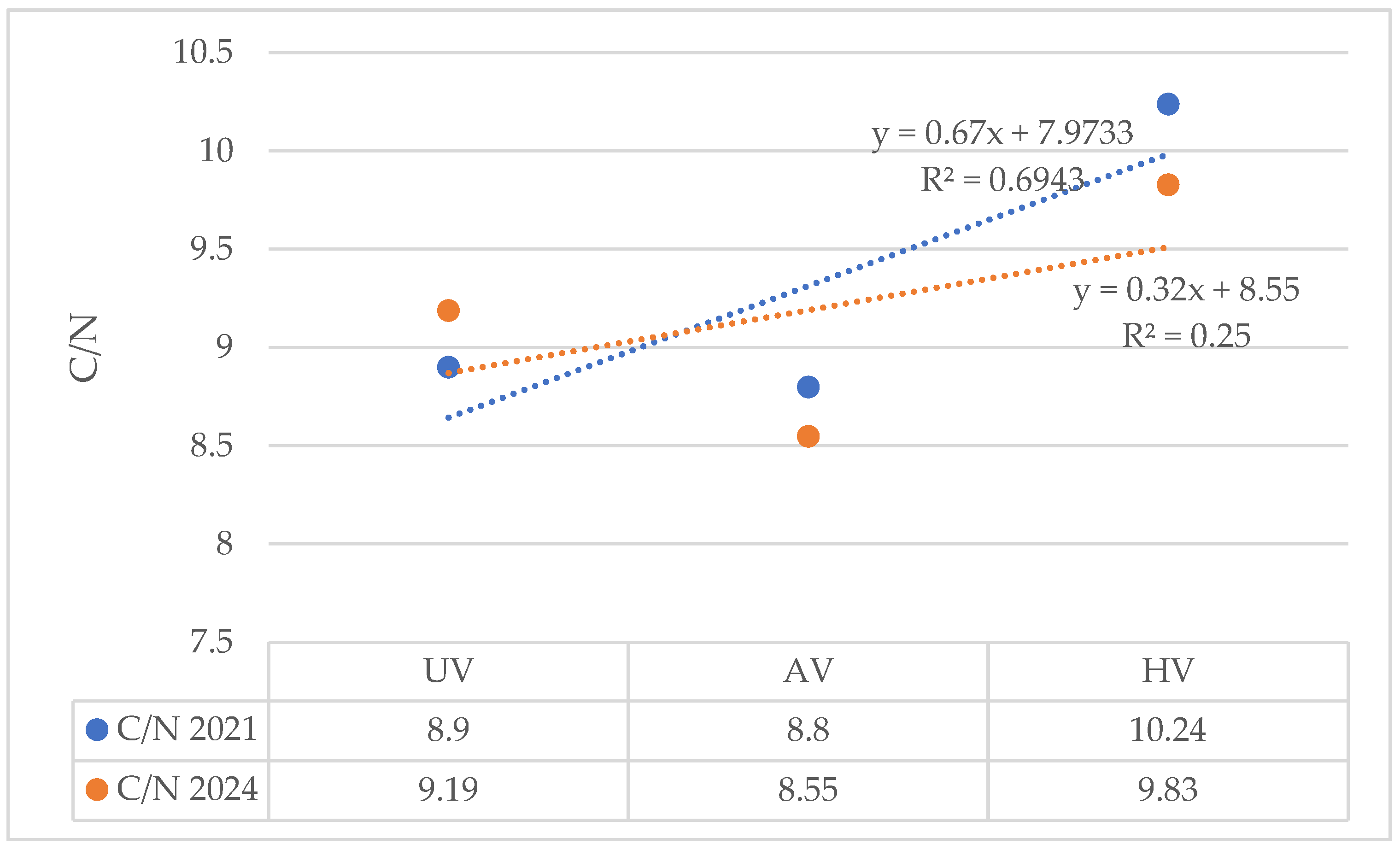 | Caav (mg kg−1) | 2021 | 1298 ± 47 b3 | 2854 ± 80 a1 | 1196 ± 91 b2 |