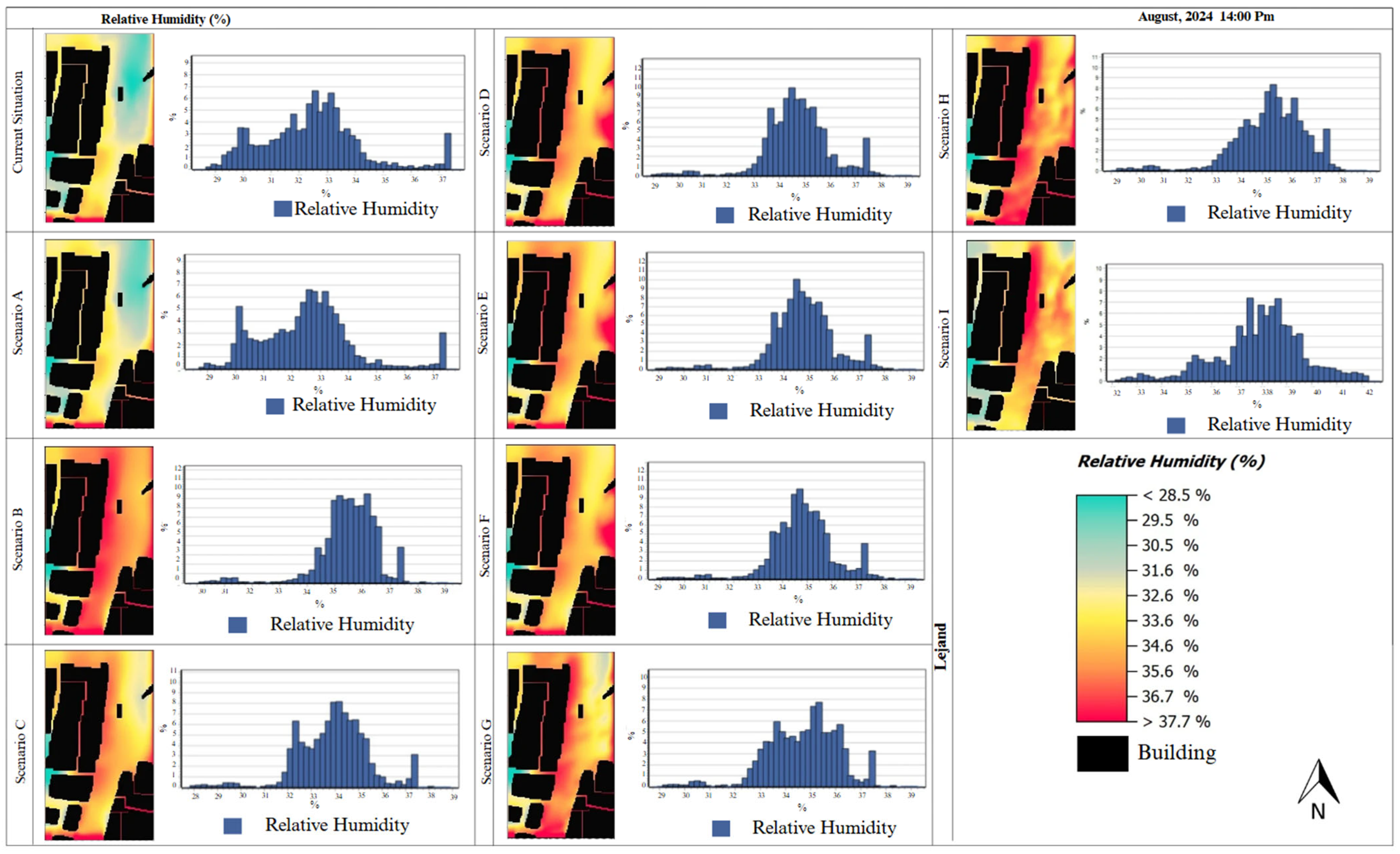 3.2. Temporal Analysis of Microclimate Parameters in Different Scenarios