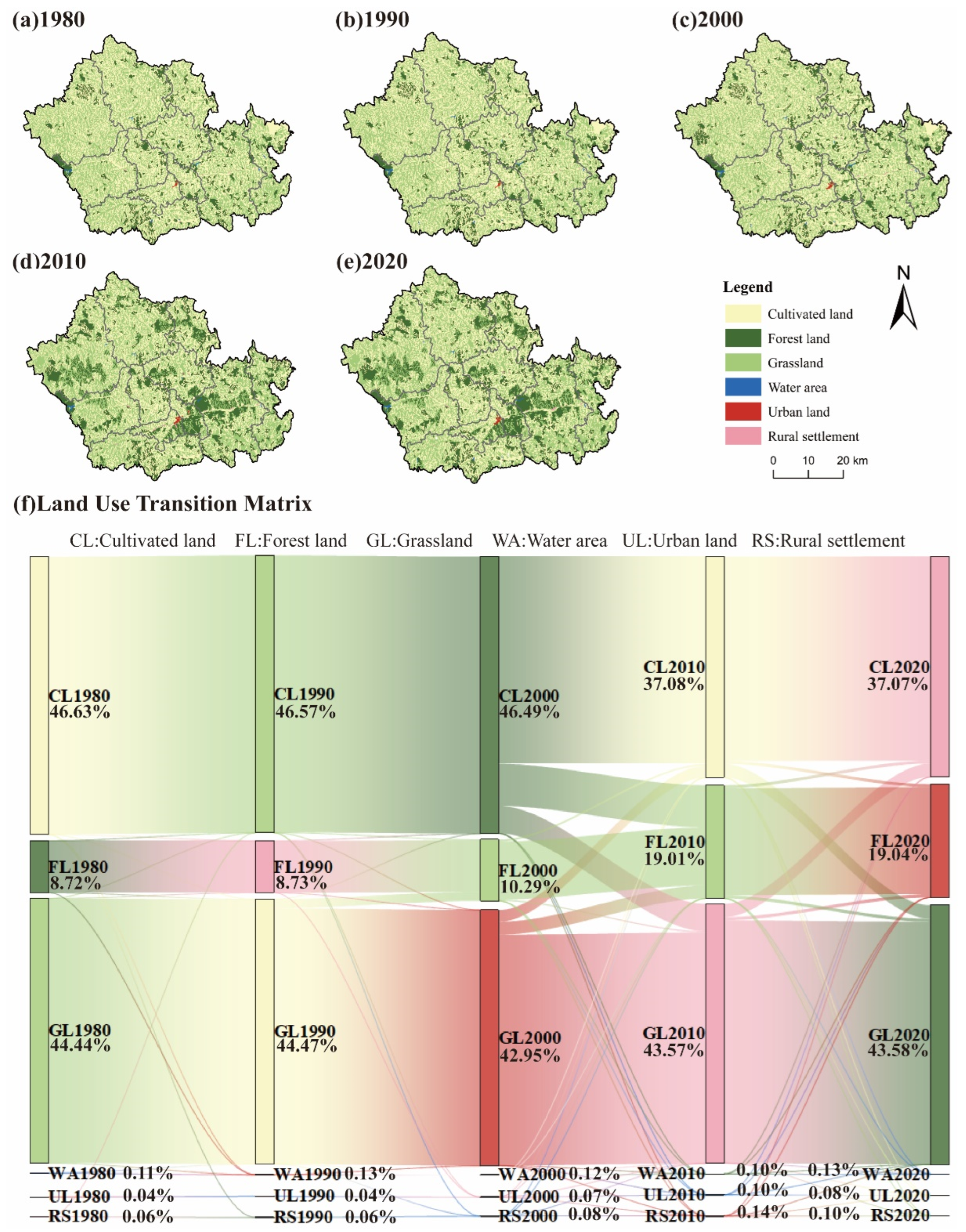 Figure 3. Land Use Transition Matrix of Zichang City from 1980 to 2020.