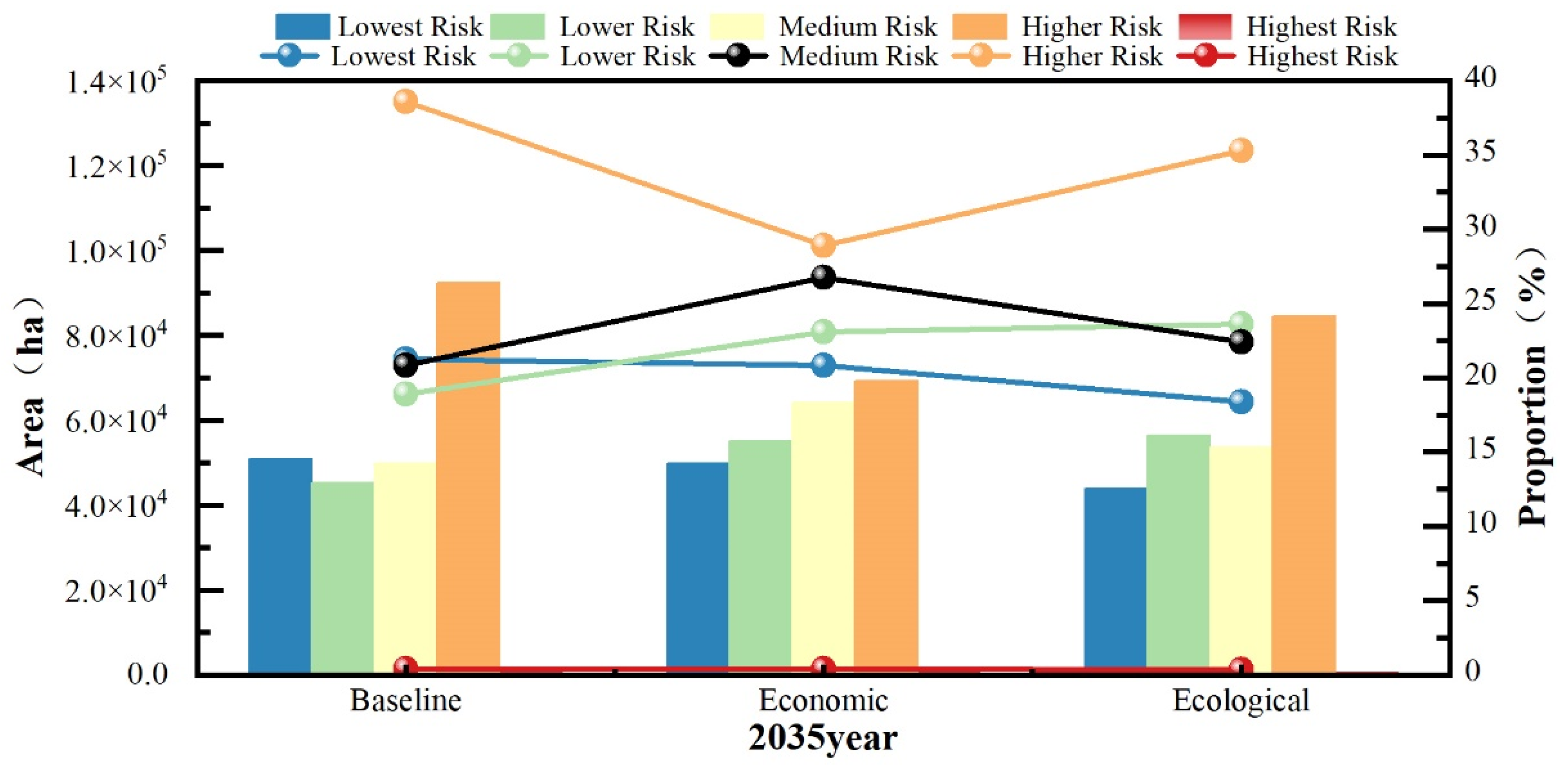 Figure 7. Statistical Proportion of Landscape Ecological Risk Levels in Zichang City under Different Scenarios for 2035.