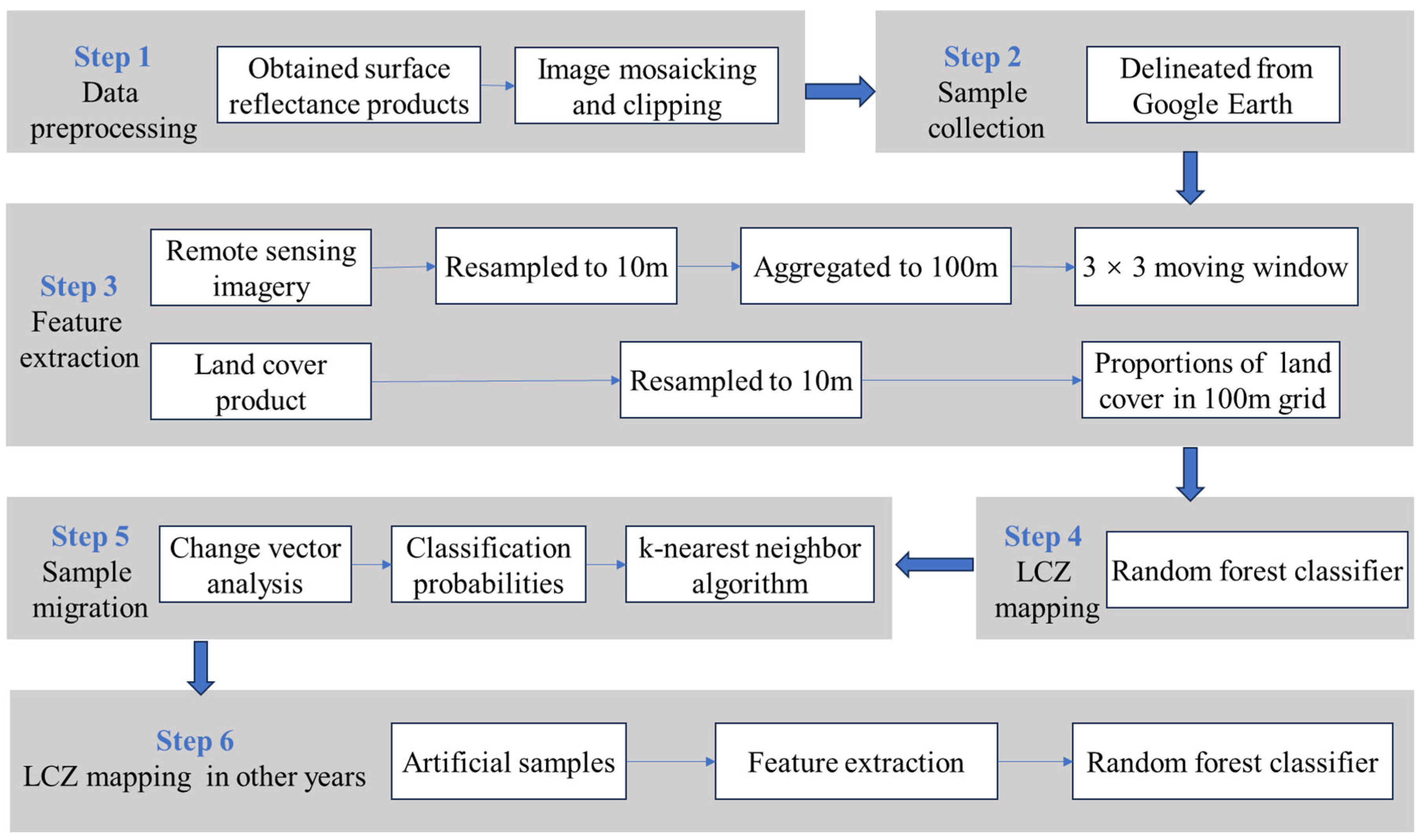 2.3. Multi-Temporal LCZ Mapping Based on Multi-Feature Local Sample Transfer