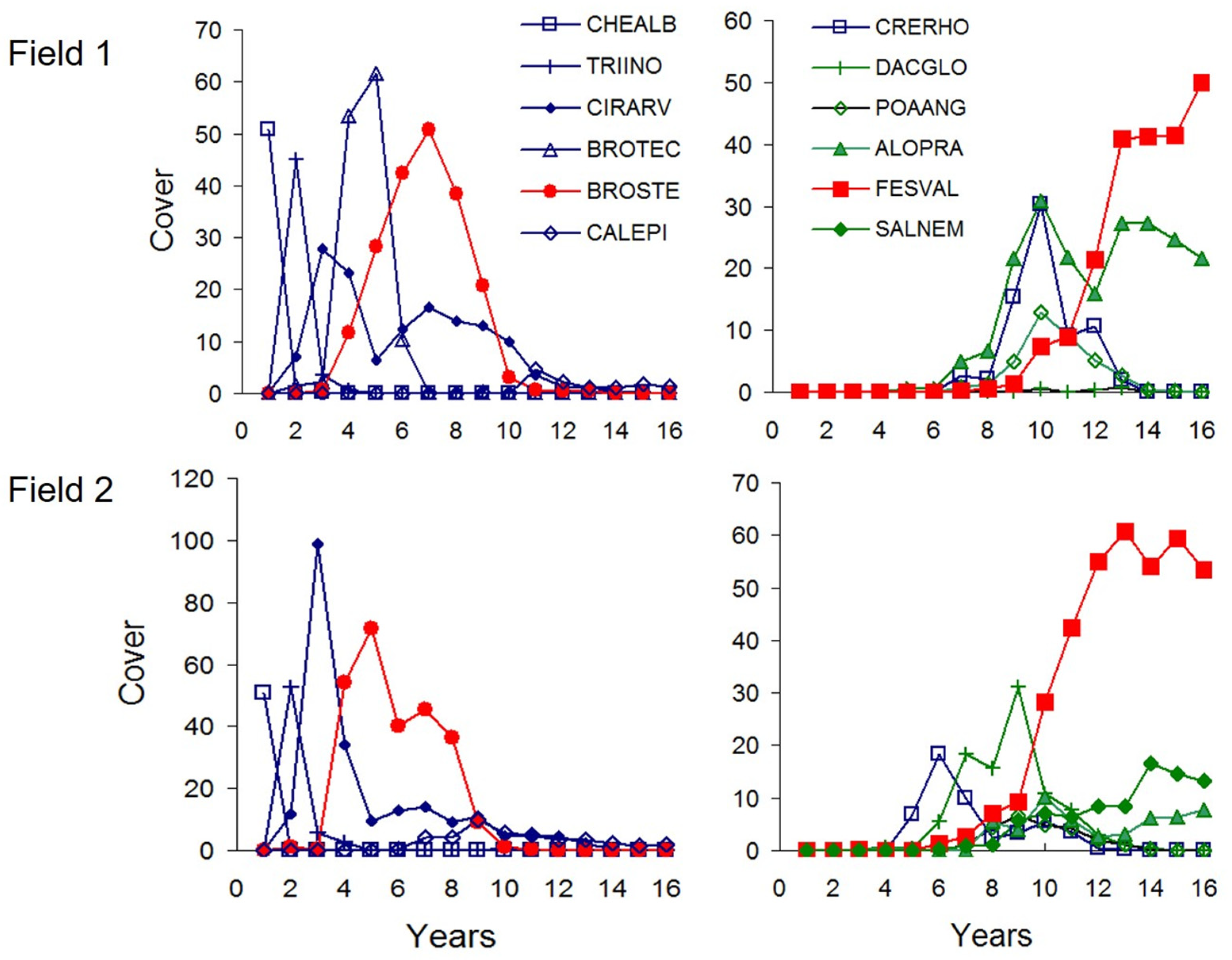 - Stadler, J.; Brandl, R.; Klotz, S. Plant communities converge to resource-dependent transient states during succession on old fields. Sci. Rep. 2025, 15, 31070. [Google Scholar] [CrossRef]