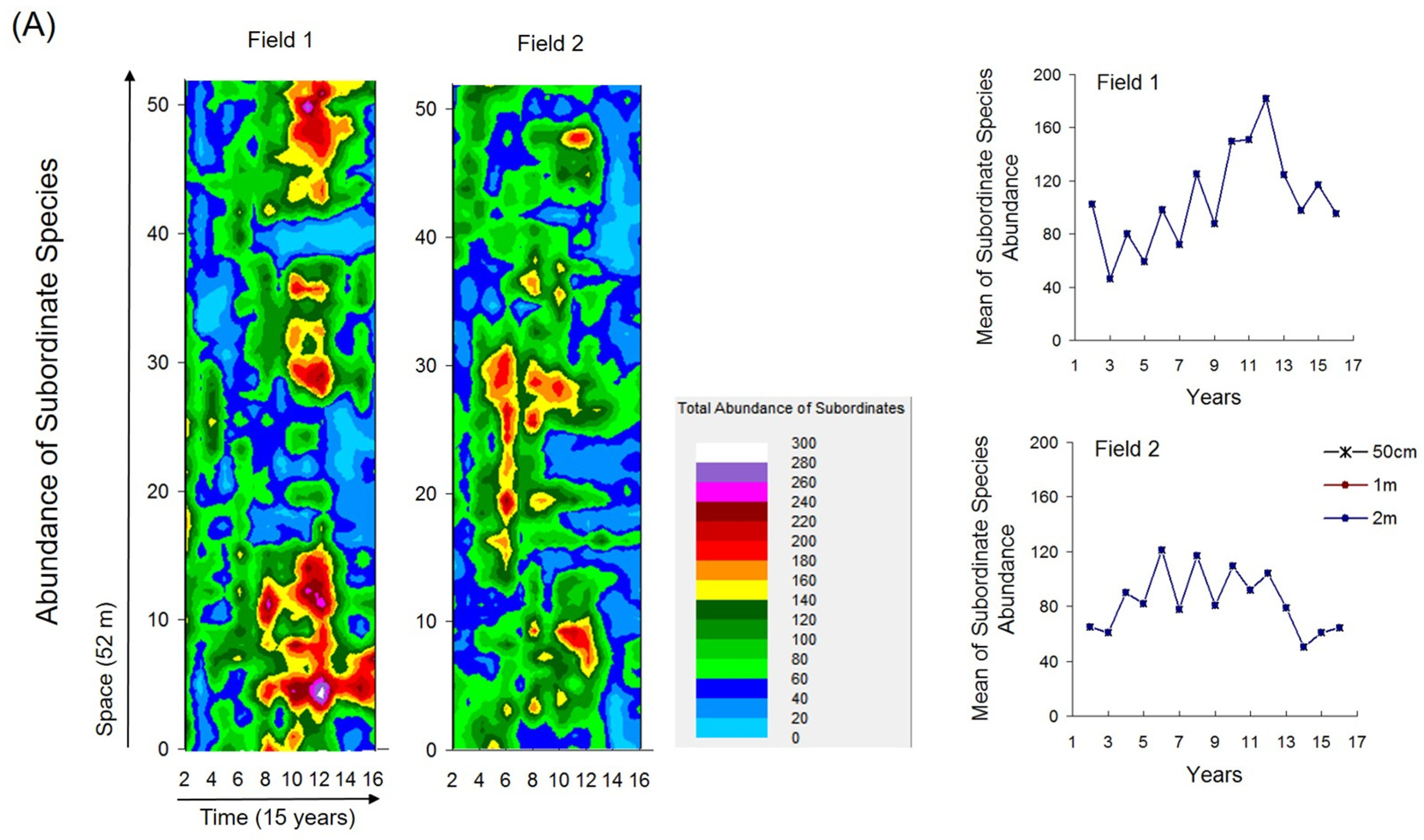 | H3 | Minimum heterogeneity driven by strong competitive effects | Minimum heterogeneity driven by increased abundances and decreased spatial patchiness | H3 rejected |