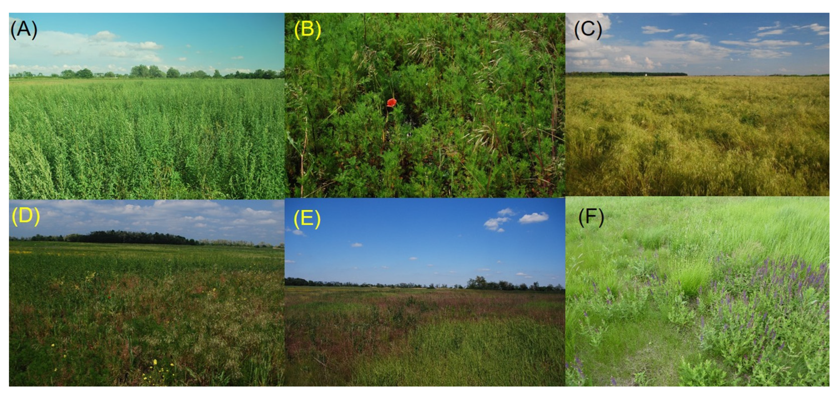 - Bartha, S.; Házi, J.; Purger, D.; Zimmermann, Z.; Szabó, G.; Guller, Z.E.; Csathó, A.I.; Csete, S. Fine-Scale Organization and Dynamics of Matrix-Forming Species in Primary and Secondary Grasslands. Land 2025, 14, 1736. [Google Scholar] [CrossRef]