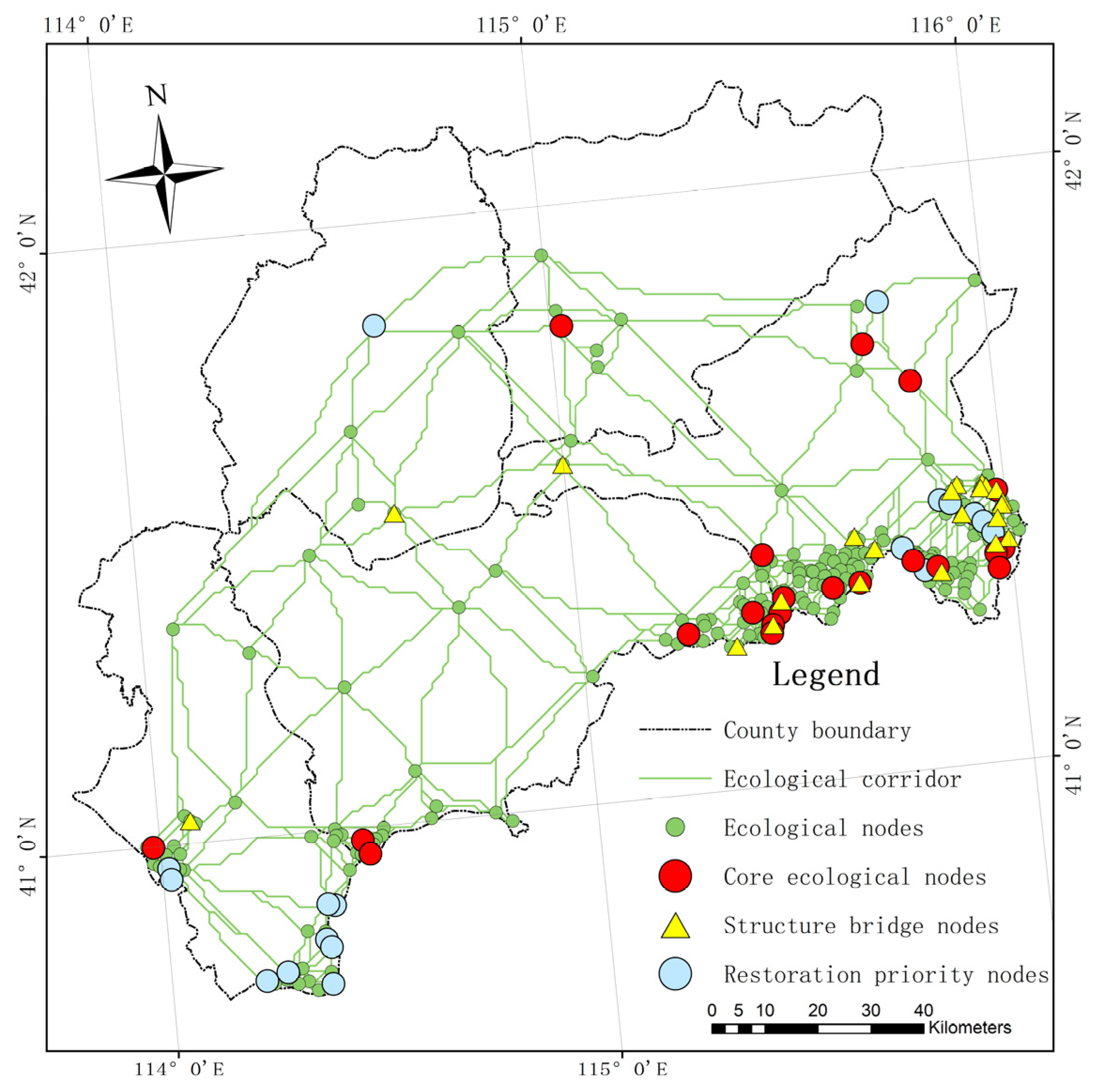 Figure 18. Spatial identification and classification of strategic nodes for differentiated management in the Zhangbei ESN (2022).