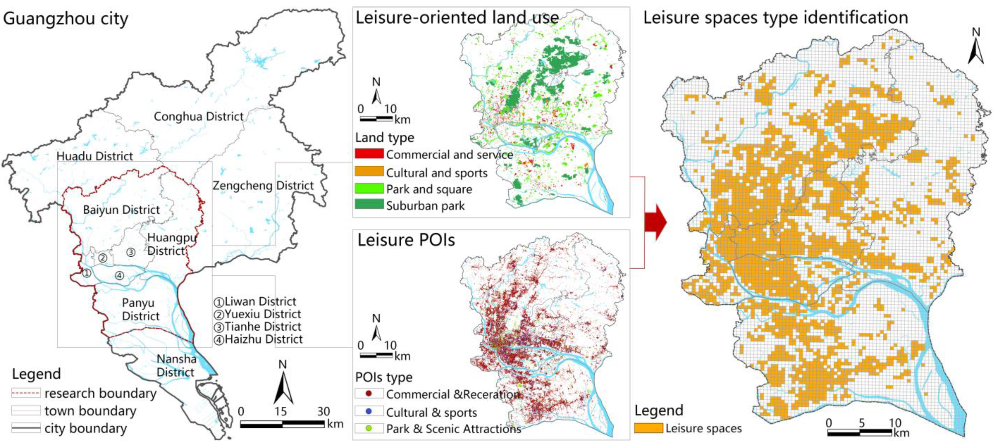 - Liu, S.; Long, Y.; Zhang, L.; Liu, H. Quantifying and Characterizing Urban Leisure Activities by Merging Multiple Sensing Big Data: A Case Study of Nanjing, China. Land 2021, 10, 1214. [Google Scholar] [CrossRef]