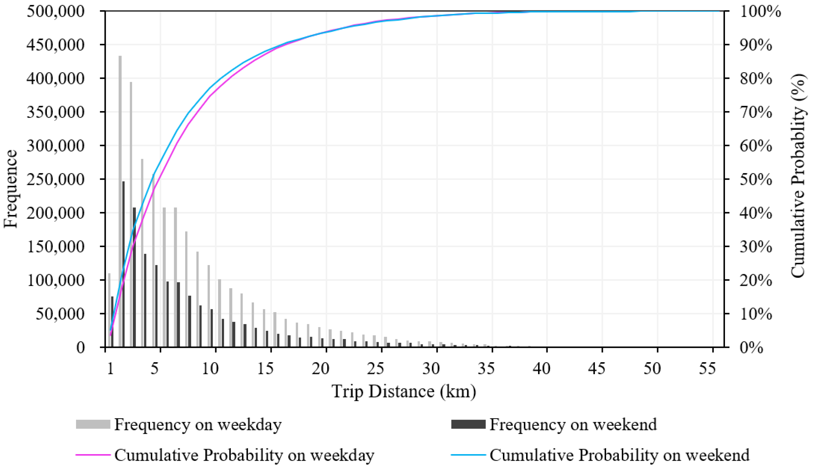 | Period | Mean | Median | Standard Deviation | Proportion of Short Distance Trip (0–5 km) | Proportion of Longer Distance Trip (5–10 km) | Proportion of Long Distance Trip (10–15 km) |