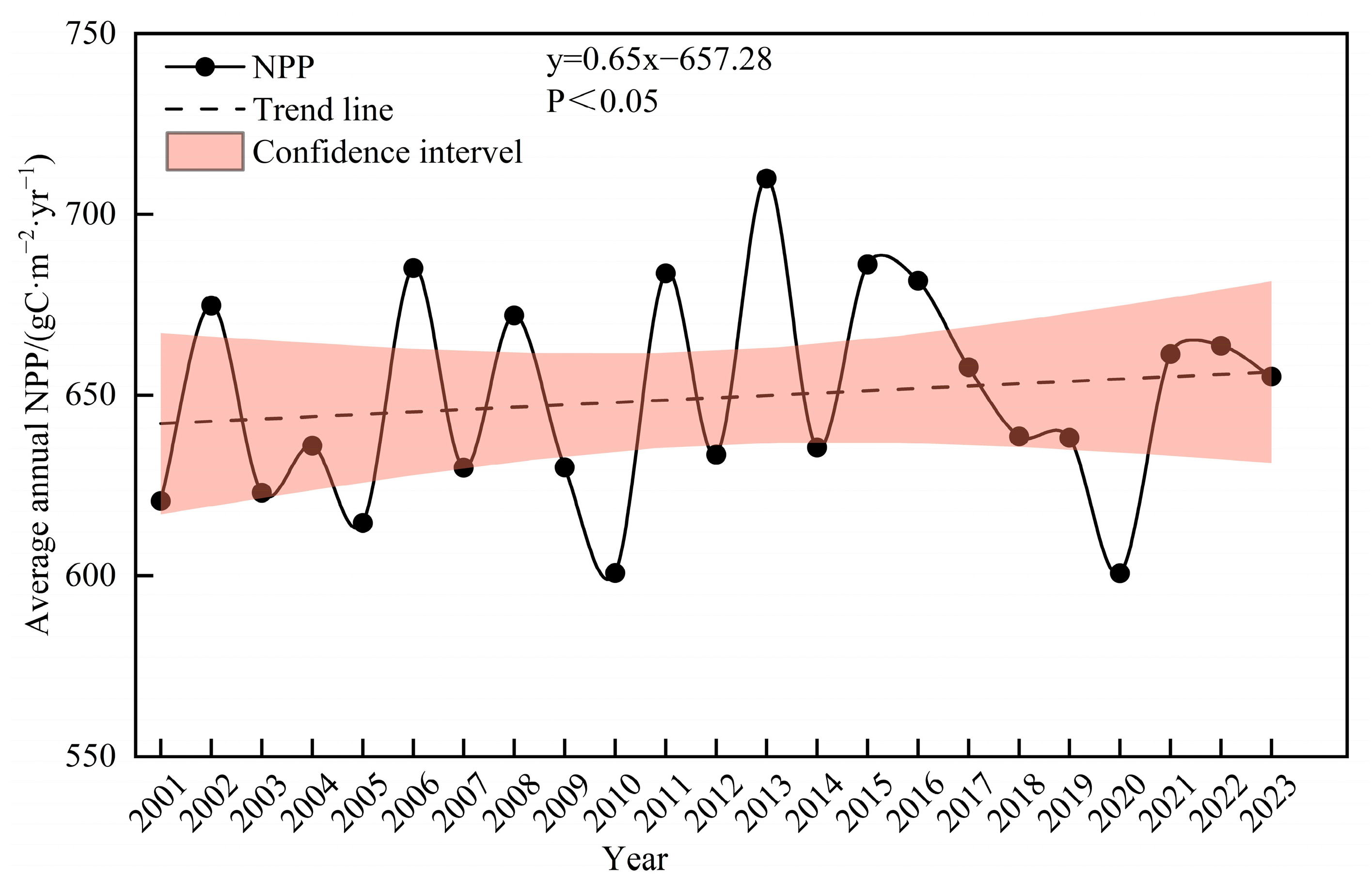 Figure 3. Interannual variations in vegetation NPP in the Giant Panda National Park from 2001 to 2023.