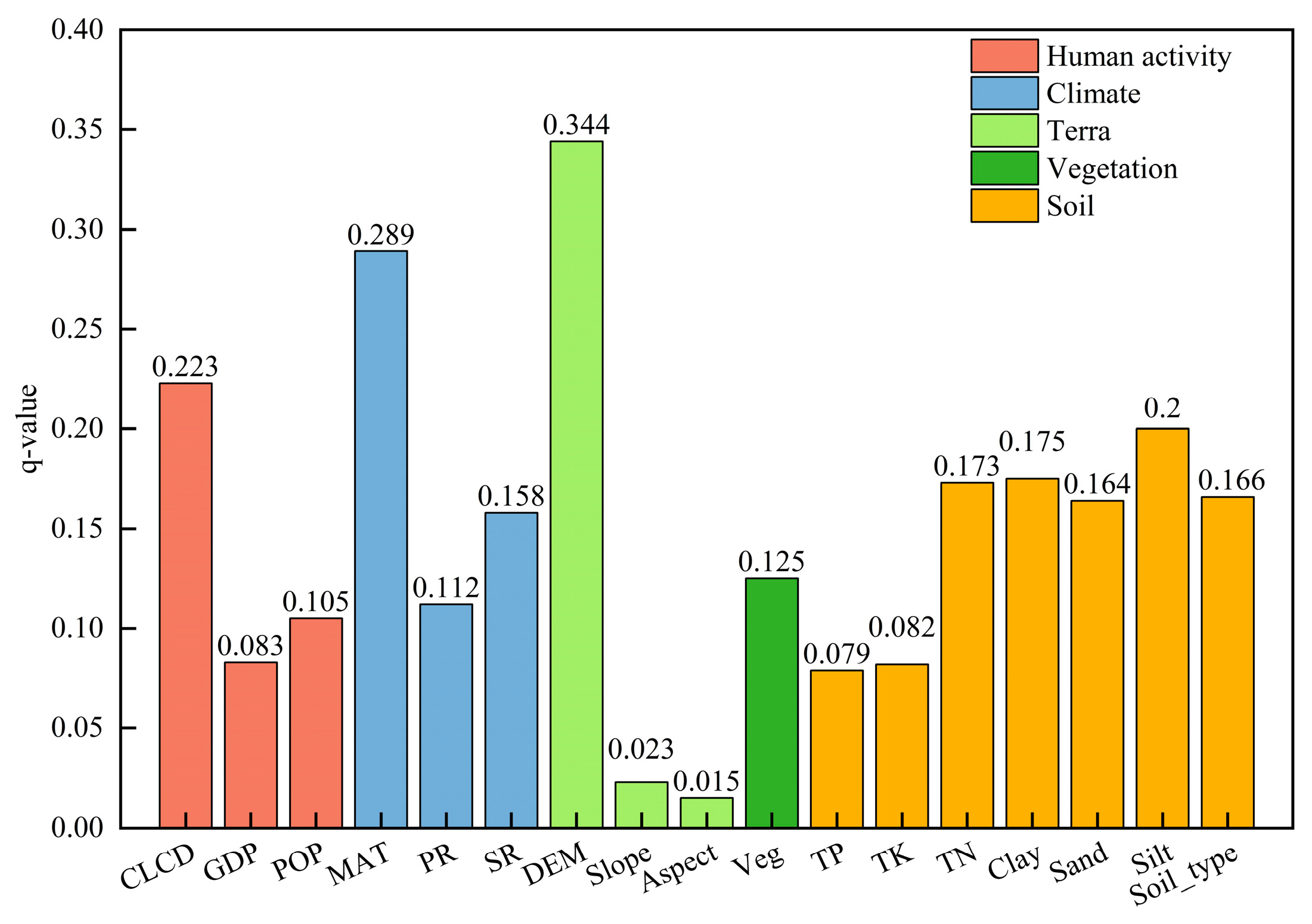 Figure 9. q-values of driving factors influencing vegetation NPP in the Giant Panda National Park.