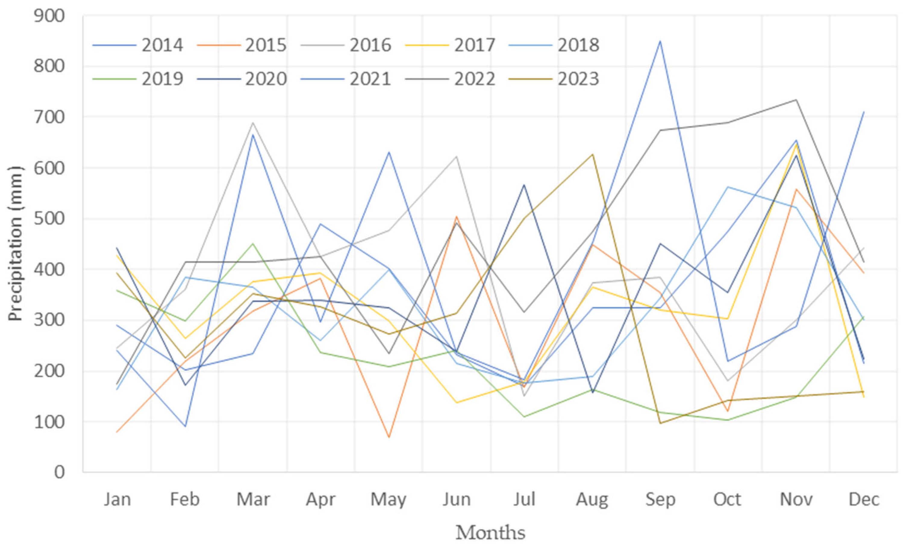 2.2.2. Monthly Rainfall Data (2014–2023)