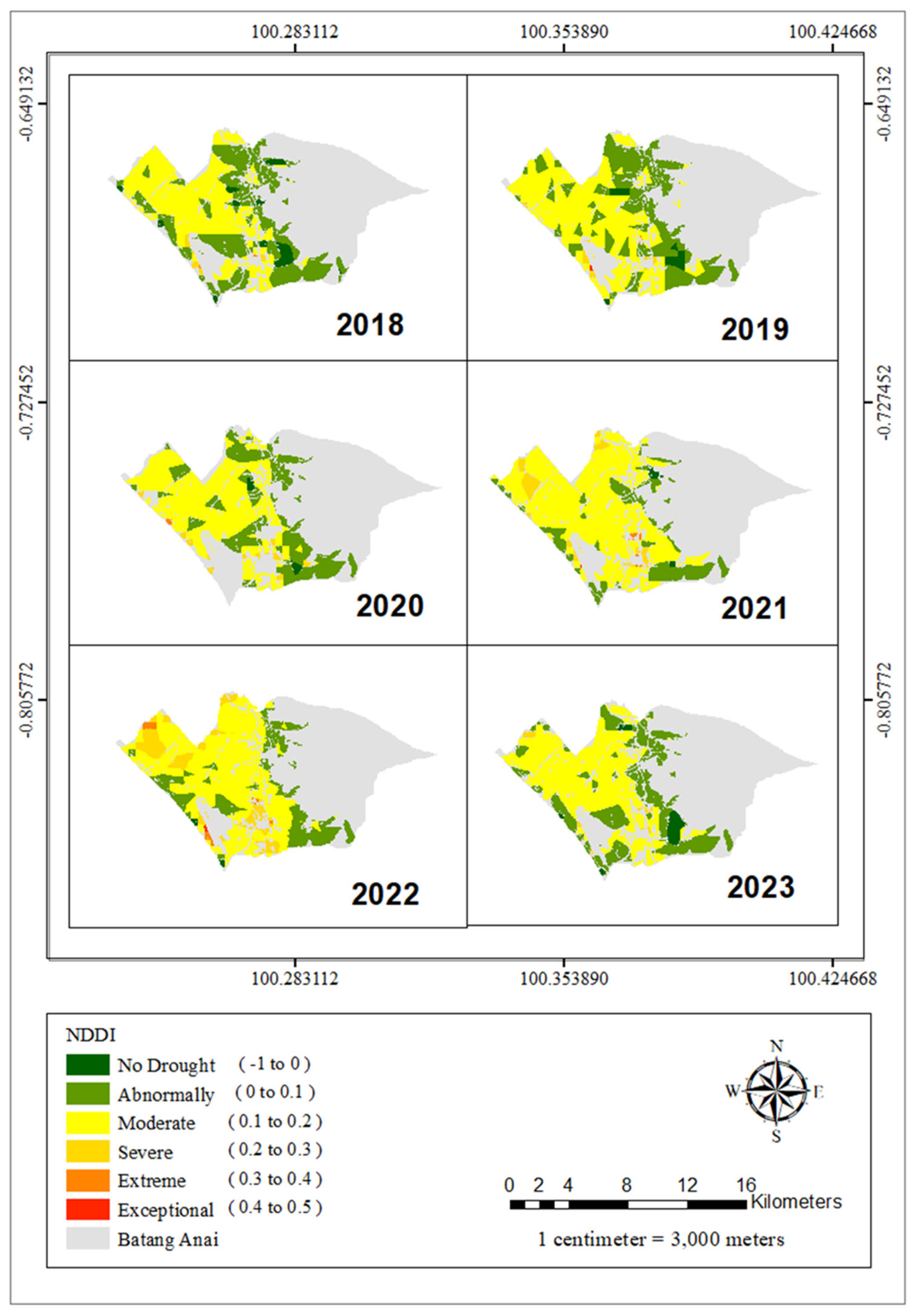3.4. Drought Distribution in Agricultural Areas in Batang Anai Subdistrict