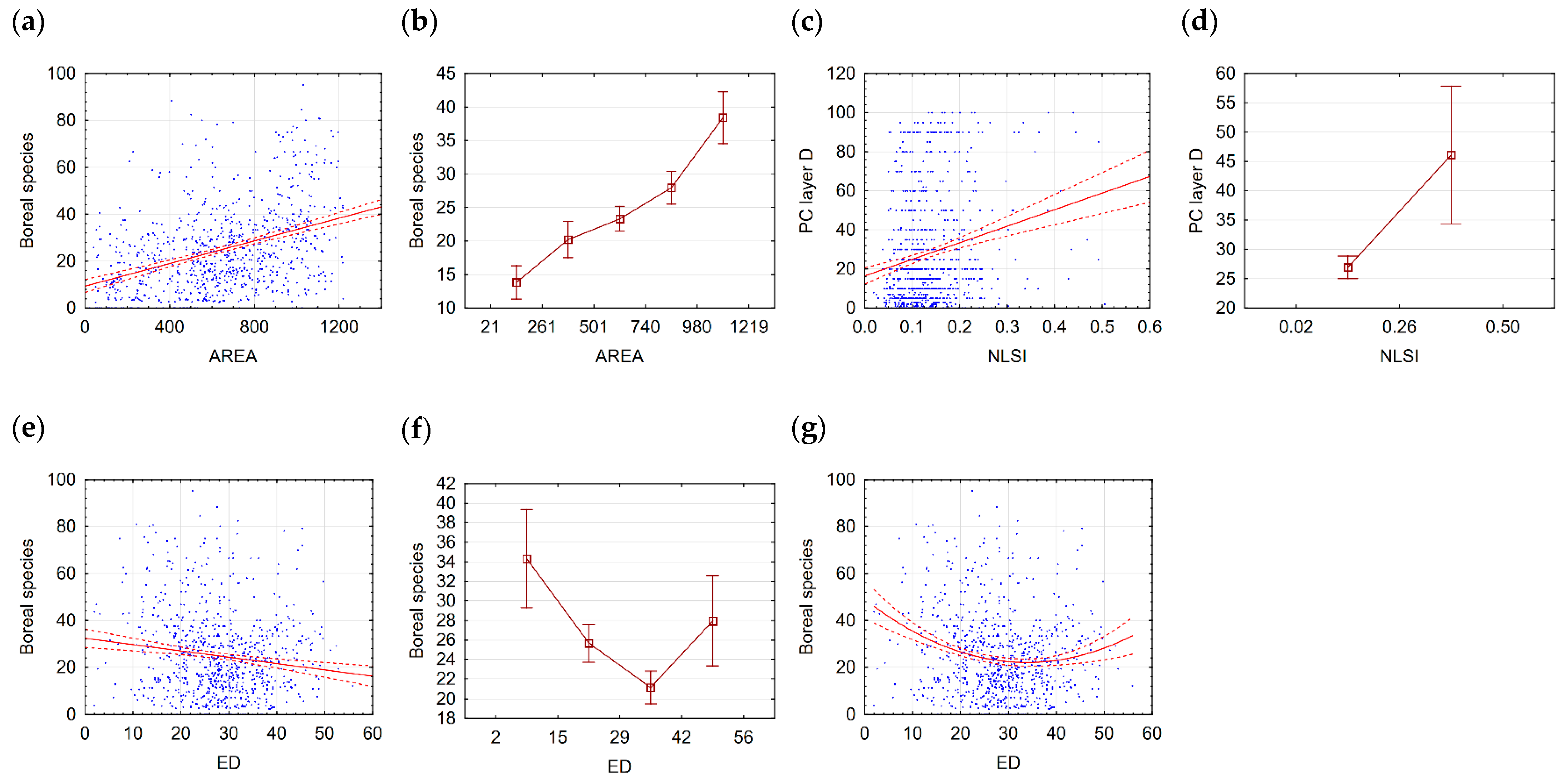 | AREA | 1.00 | −0.43 * | −0.75 * | 0.30 * | −0.76 * | −0.25 * | −0.64 * |