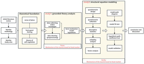 To address these limitations, this study adopts a sequential mixed-methods design, combining grounded theory and structural equation modeling (SEM). Grounded theory is first applied to analyze 358,700 words of travelogues, enabling the inductive identification of latent constructs such as host–guest sharing and sense of place. This qualitative phase captures the richness of tourists’ subjective experiences and contextualizes their motivations within the spatial and cultural fabric of food markets. Subsequently, SEM is employed to statistically validate the causal relationships among these constructs using survey data from 416 participants. This dual-phase approach not only bridges the gap between exploratory and confirmatory research but also establishes a robust, generalizable theoretical model. By integrating qualitative depth with quantitative rigor, this study offers a comprehensive understanding of the mechanisms driving tourists’ behavioral intentions, thereby advancing both theoretical and methodological discourse in urban tourism research.