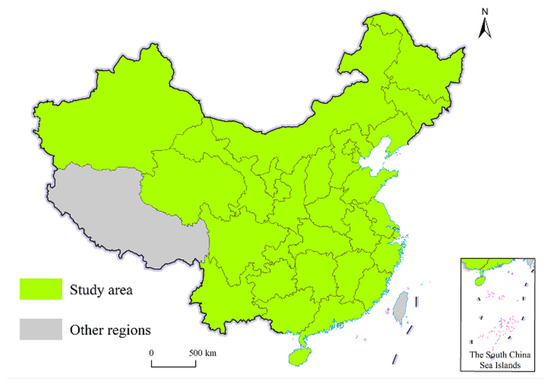 In this paper, panel data from 30 provinces (excluding Macao, Hong Kong, Xizang, and Taiwan) from 2011 to 2021 are selected as the sample research interval. As shown in Figure 2. The data are obtained from the China Statistical Yearbook, the China Rural Statistical Yearbook, the China Taobao Village Research Report, and the Digital Financial Inclusion Index released by the Digital Finance Research Center of Peking University. Some of the missing data are made up by linear interpolation or are compensated by using the previous period’s data for the missing data.