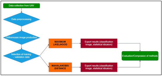 To this end, the present study aims to compare the widely used MLC and MDC approaches in LULC mapping, based on very-high-spatial-resolution imagery collected from UAVs. A typical agricultural Mediterranean site located in Greece is used as a case study.