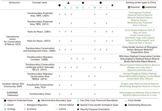 Comparison of conceptual features related to transboundary protected areas.
