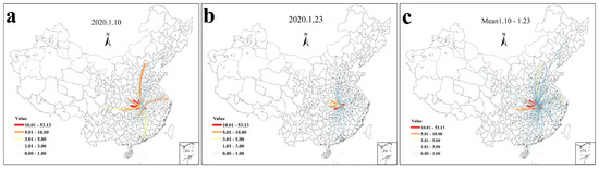 Value of migration from Wuhan to other cities from 10 January to 23 January and mean value of migration from Wuhan to other cities from 10 January to 23 January.