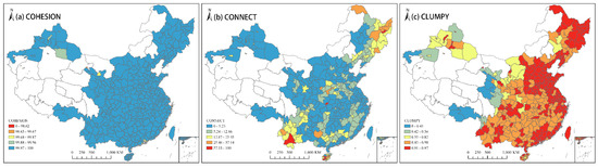 Green space compactness. Note: (a) green space cohesion, (b) green space connectivity, (c) green space clumpiness.