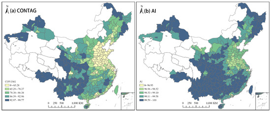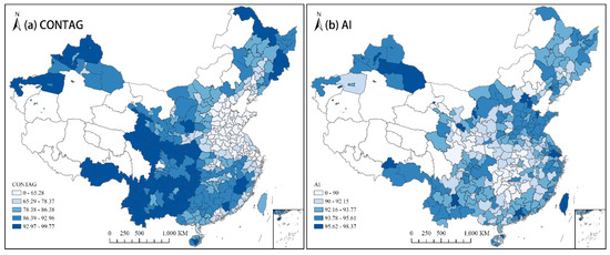 Spreadability of green space. Note: (a) green space contagion, (b) green space aggregation index.
