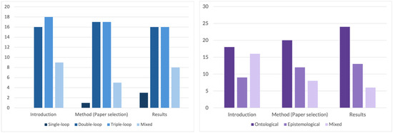 Analysis of the methodological approaches used showed that only a few papers consistently followed an epistemological approach, and about one-third followed an ontological approach. The remaining papers used a combination of both approaches, framing their introductions epistemologically but using ontologically oriented methods or results.