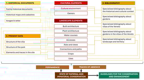 Methodological scheme applied in the research of the cultural–historical landscape of Villa Giusti-Puttini.