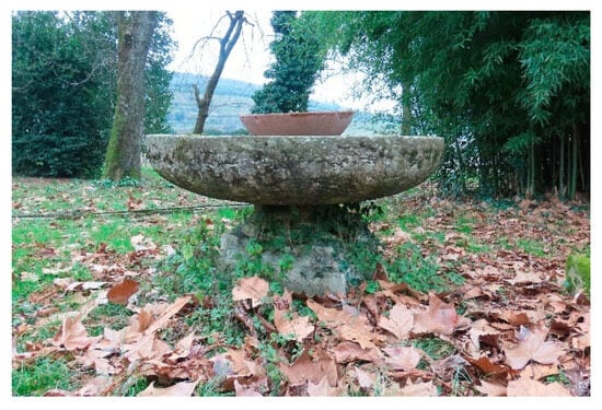In Avogaro’s description, we can imagine how the park of the villa at that time must have been divided into different parts: the walled garden with flowers, vegetables and medicinal herbs; the orchard with peach and fig trees; the veridarium or area with evergreen trees; and the fountains and pools. The park described is the place where the coexistence of flowers, fruit and leafy trees recalled the richness of Eden [] and at the same time created a coexistence between the literary and leisure garden and the variety of fruit and vegetable crops necessary for the internal consumption of the villa [].