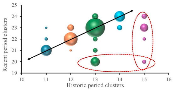 Cluster distribution for recent/historic periods.