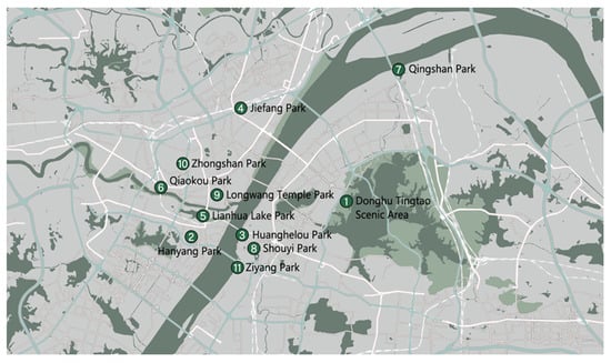 Distribution map of Wuhan’s historical urban parks.