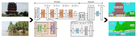 - Xie, E.; Wang, W.; Yu, Z.; Anandkumar, A.; Alvarez, J.M.; Luo, P. SegFormer: Simple and effective design for semantic segmentation with transformers. Adv. Neural Inf. Process. Syst. 2021, 34, 12077–12090. [Google Scholar]