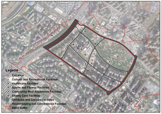 Based on this classification framework, facilities were divided into three hierarchical levels: Level I facilities—key services that are strongly promoted; Level II facilities—services recommended for prioritized construction; Level III facilities—supplementary services implemented based on local demand and site conditions. Following this classification, seven major categories of embedded service facilities were selected as the focus of analysis: Elderly Care Facilities; Childcare and Daycare Facilities; Community Meal Assistance Facilities; Healthcare Facilities; Sports and Fitness Facilities; Cultural and Recreational Facilities; Housekeeping and Convenience Facilities.