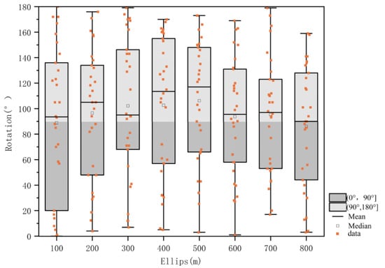 Formula (12) can be used to calculate both the major and minor semi-axes of an ellipse, which indicate the direction in which architectural elements are distributed throughout the circle. This difference between  and  is known as the oblateness (). When  is large, this indicates that the directions of development of this zone are more apparent, the centripetal agglomeration force is less strong, and the distribution of zones is more distinct. Therefore, we can calculate the oblateness of the ellipse by using the following formula: